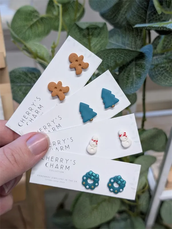 These adorable mini festive studs are the perfect little addition to your outfits this December! 🎄🌟🎄 They are handmade from polymer clay so they are lightweight and durable - perfect for wearing all day long! They are unique whilst maintaining subtlety, which means they can be ideal for office wear, casual outfits or those special festive celebrations. Rock your Christmas parties with a piece of handmade art!