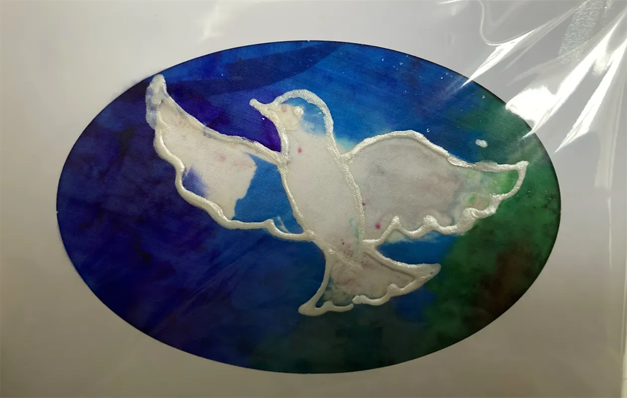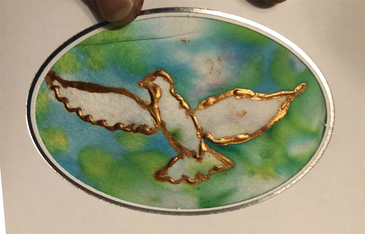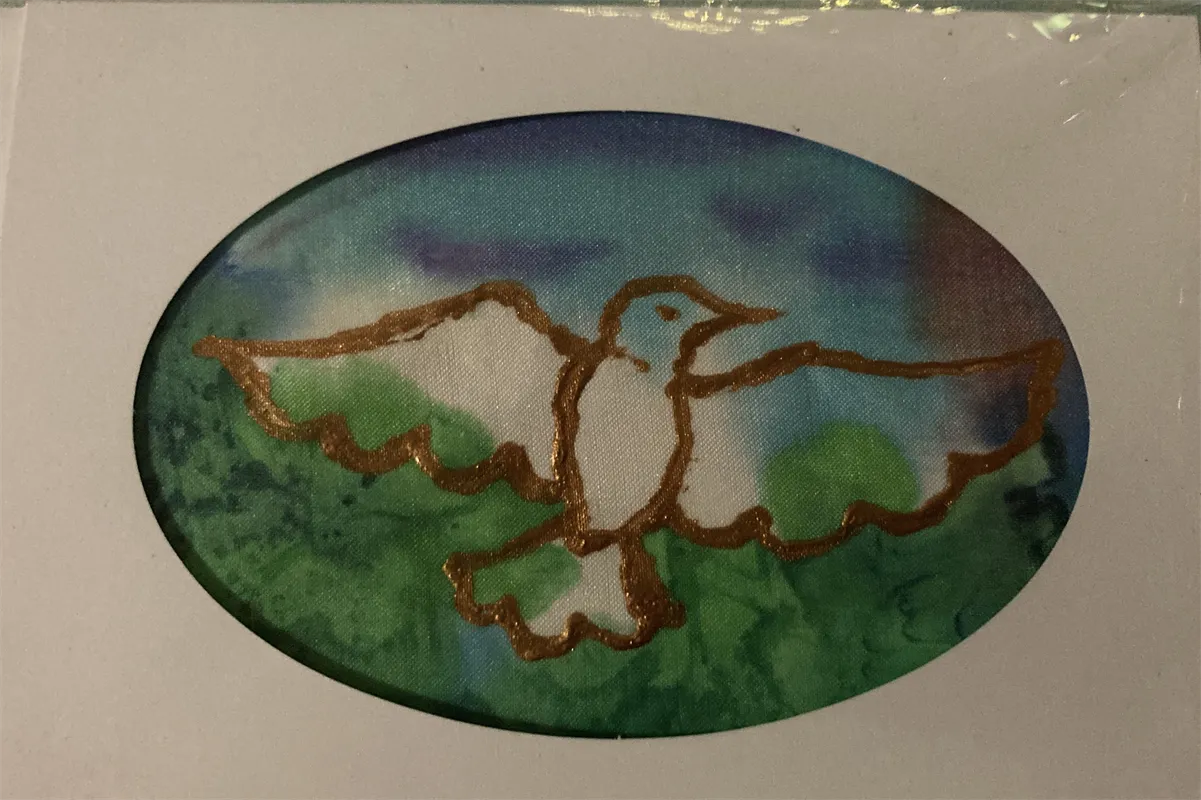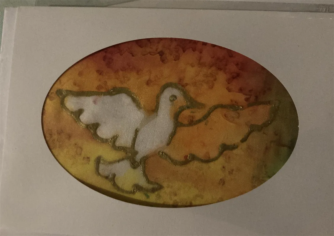 Each card is unique and made to order so there is variety. Some are in an oval frame while others are in a rectangle. Some face left and some right. Some include all the Palestine Flag colours and some are dominated by one colour - as we use liquid dyes and they move in their own way. Some doves are almost completely white while others may be completely filled by the background colours as if they are flying through smoke.