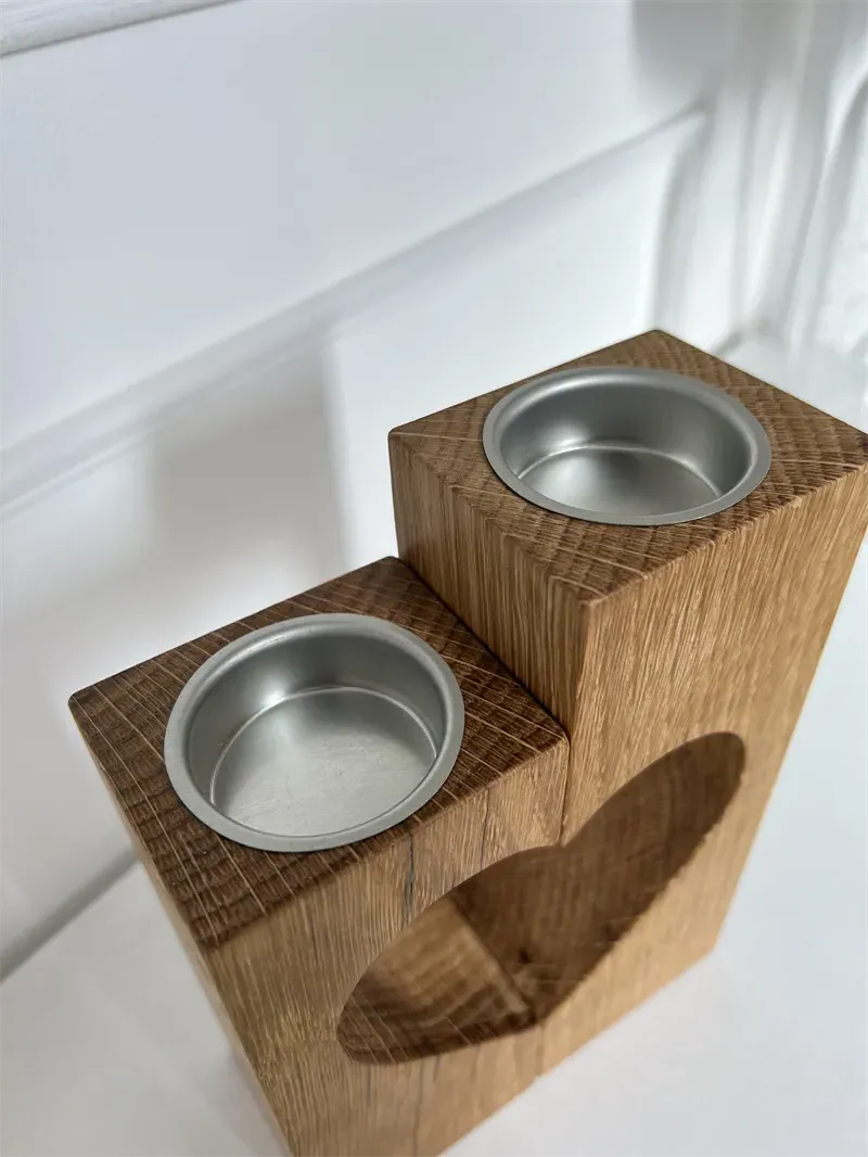 Discover our beautiful two piece oak heart candle holder that will look beautiful in your home.