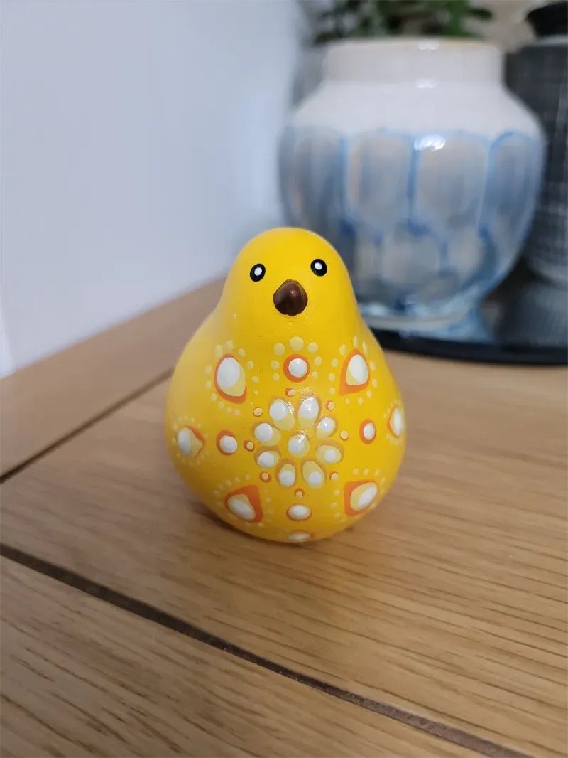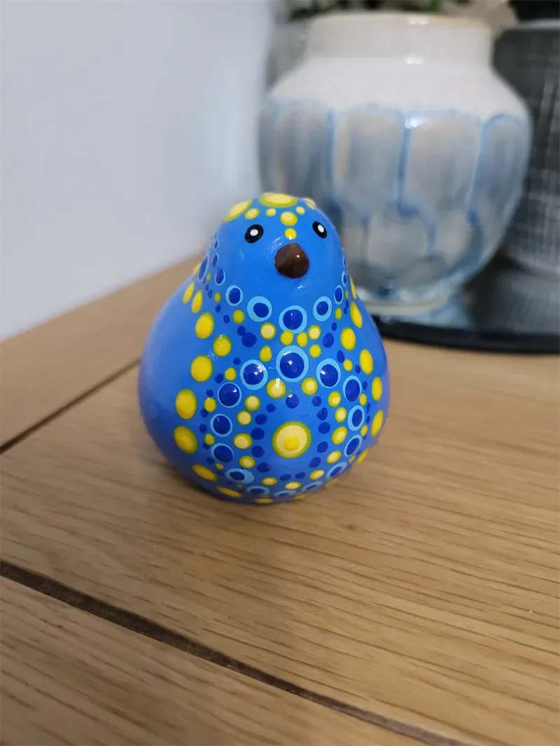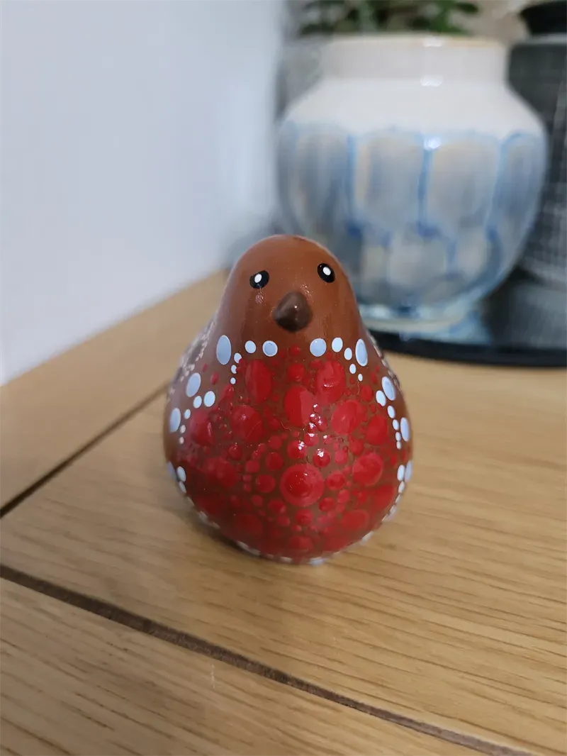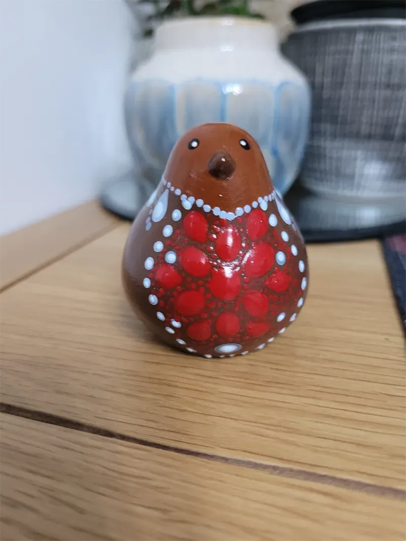 These delightful little birds measure just 75mm/2.9" long, 48mm/1.9" wide and 53mm/2.1" tall. Each one is individually painted by myself, meaning that no two pieces will be identical, giving the customer a truly unique gift. Although I often use a similar colour pallete on more than one piece, the design itself will vary. I aim to have pieces ready to send where possible, but I do love to create bespoke commissions, so please get in touch if you'd like that special gift.