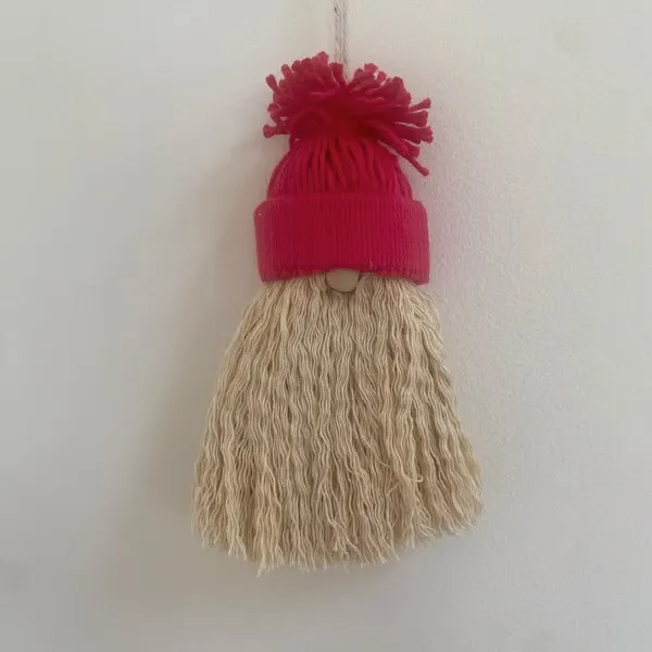 This handmade felt Christmas gonk measures about 15cm in length and 5cm in width, and features a charming pink hat.