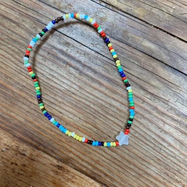 Handmade fun rainbow bracelet with a beautiful white star bead.