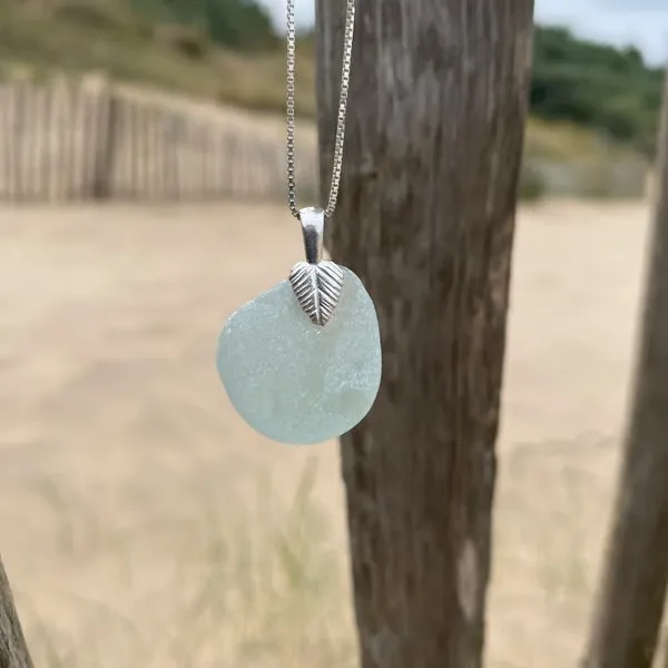 This piece features sea glass collected from my local beach in Cleethorpes, suspended from a sterling silver chain with a silver hallmarked bail. It bears the hallmark verifying the silver standard along with my personal maker’s mark from the Goldsmiths’ Assay Office in London. It’s presented in a recyclable cardboard gift box.