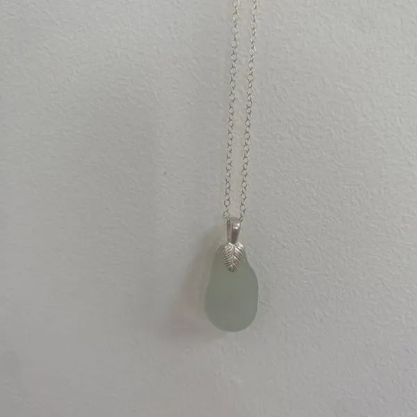 This piece features sea glass collected from my local beach in Cleethorpes, suspended from a sterling silver chain with a silver hallmarked bail. It’s stamped with proof of the silver standard and my personal maker’s mark from the Goldsmiths’ Assay Office in London. It comes packaged in a recyclable cardboard box.
