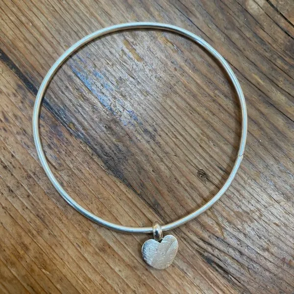 Silver Bangle With Heart Charm (729)