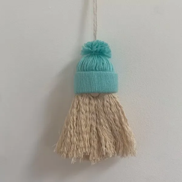 This handmade felt Christmas gonk measures about 15cm in length and 5cm in width, and features a charming turquoise hat.