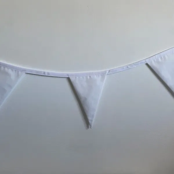Handmade cotton bunting made from white cotton sewn onto a matching white binding. It features 10 double-sided flags and measures approximately 2.8 metres in length. Available in a single length of up to 25 metres. Contact lemon-seagull1@outlook.com for details.