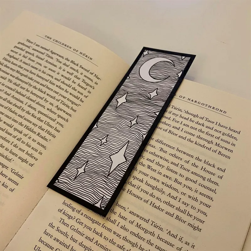 This beautiful Hand Illustrated Night Sky Bookmark features a Moon and Stars and is double-sided. Perfect for any bookworm!